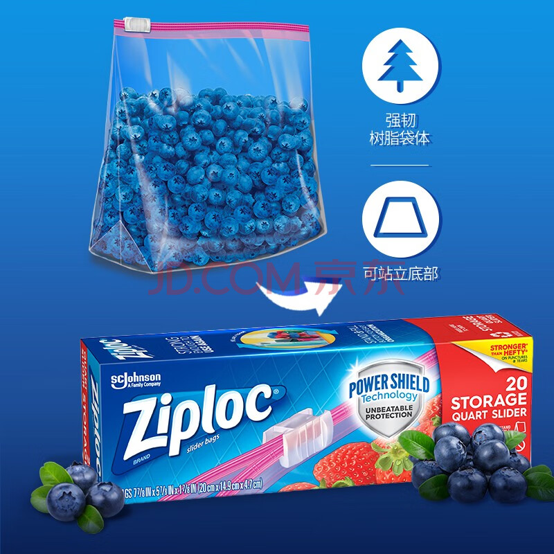 商品相册:ziploc密保诺拉链式保鲜袋中号20个 可重复使用 食品级密封袋第1张/共6