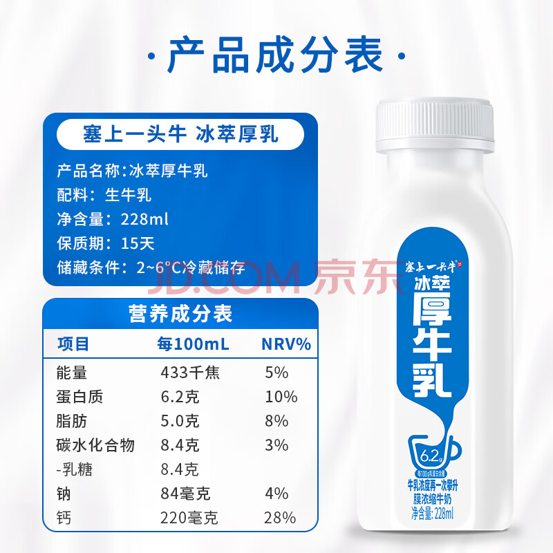 商品相册:塞上一头牛 冰萃厚牛乳228ml*6 厚乳 高蛋白牛奶 鲜奶生鲜 低温奶 奶第1张/共7