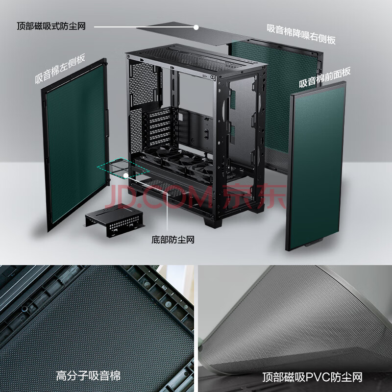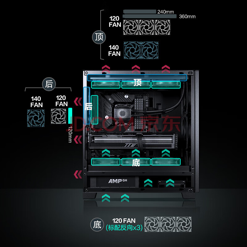 商品相册:追风者(PHANTEKS)XT523主动静音商务办公台式电脑机箱(全金属外观/7风扇位/三面吸音棉/Type-C Gen2/5080)第
