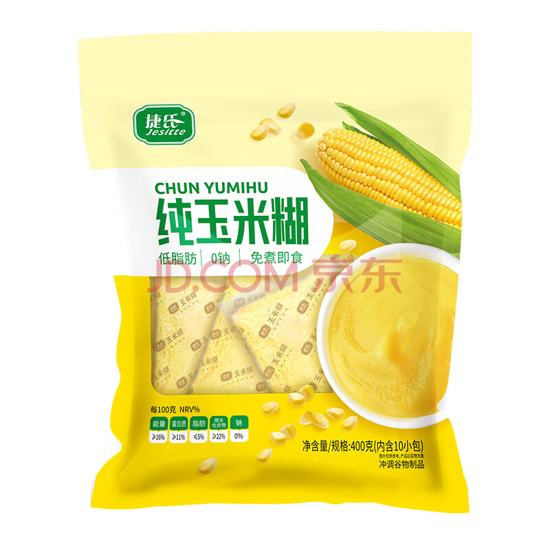 商品相册:捷氏纯玉米糊400g低脂肪玉米羹无蔗糖玉米粉粗粮营养早代餐冲饮玉米汁第