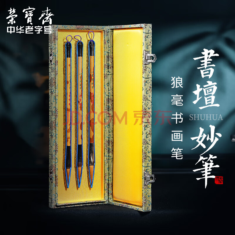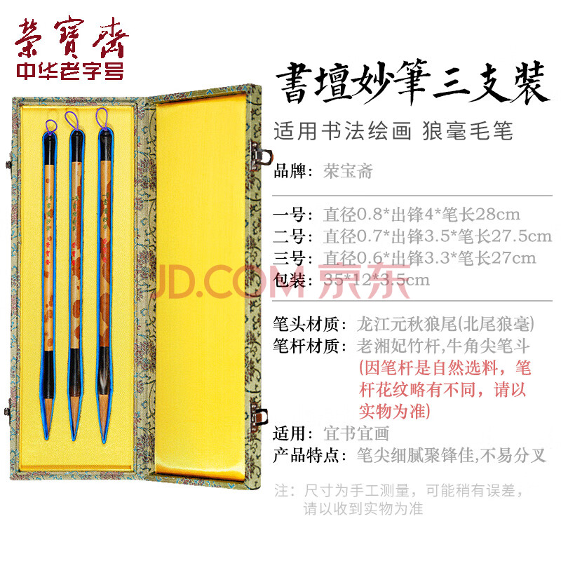 商品相册:【全网低价】荣宝斋 毛笔套装 北尾狼毫传统牛角老湘妃竹笔杆文房四宝行篆隶楷手作软笔高档礼盒 书坛妙笔第