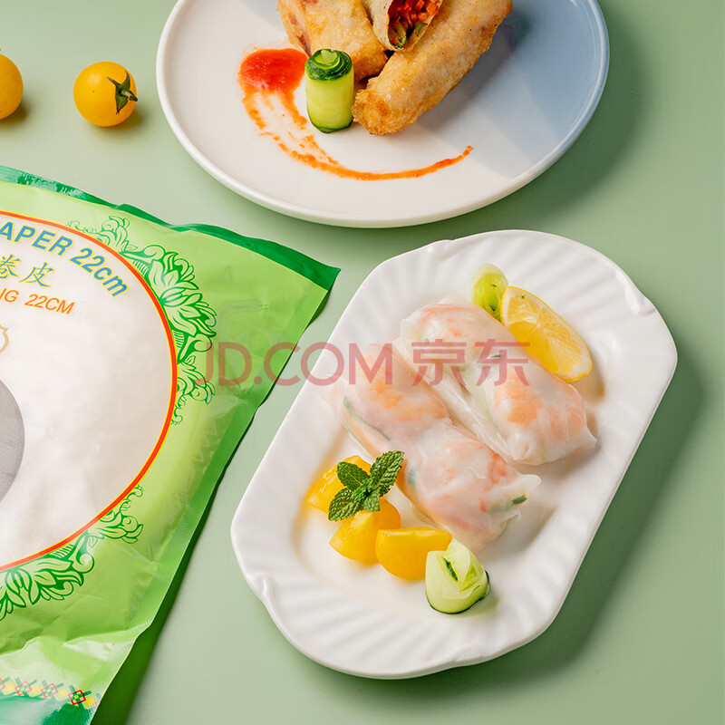 商品相册:水妈妈 越南进口 可油煎春卷皮500g 0脂肪水晶春饼蔬菜卷米皮 炸馅饼第