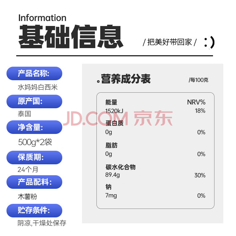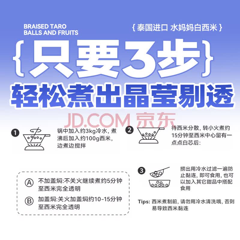 商品相册:水妈妈白西米500g*2袋装 泰国进口 0脂杂粮小西米露水果捞奶茶甜品配料第