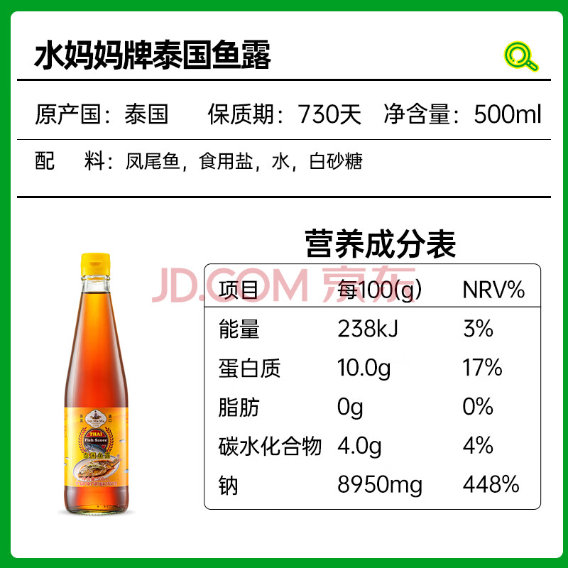 商品相册:水妈妈泰国进口 鱼露500ml 凤尾鱼汁冬阴功汤 泰餐料理调味料 玻璃瓶装 第1张/共6