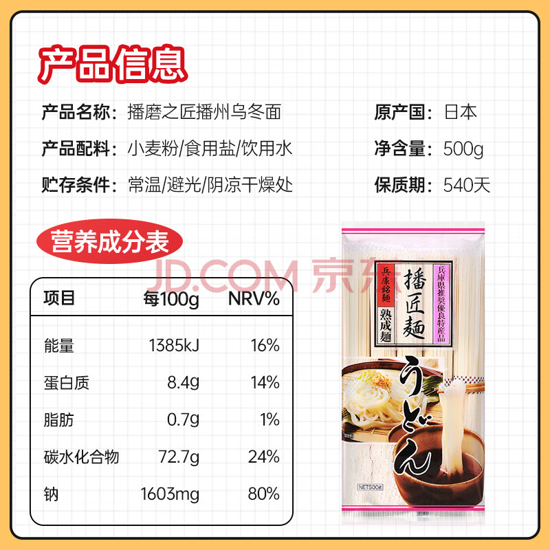 商品相册:播磨之匠日本原装进口 播磨之匠乌冬面500g 日式宽面条干面条 劲道耐煮第