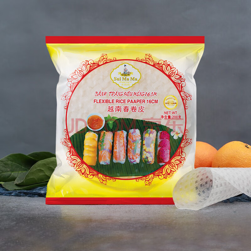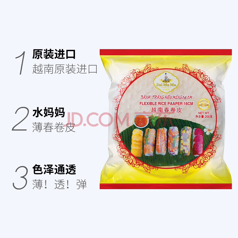 商品相册:水妈妈超薄春卷皮200g(约40张) 越南进口蔬菜卷0脂肪透明米纸皮春饼皮第