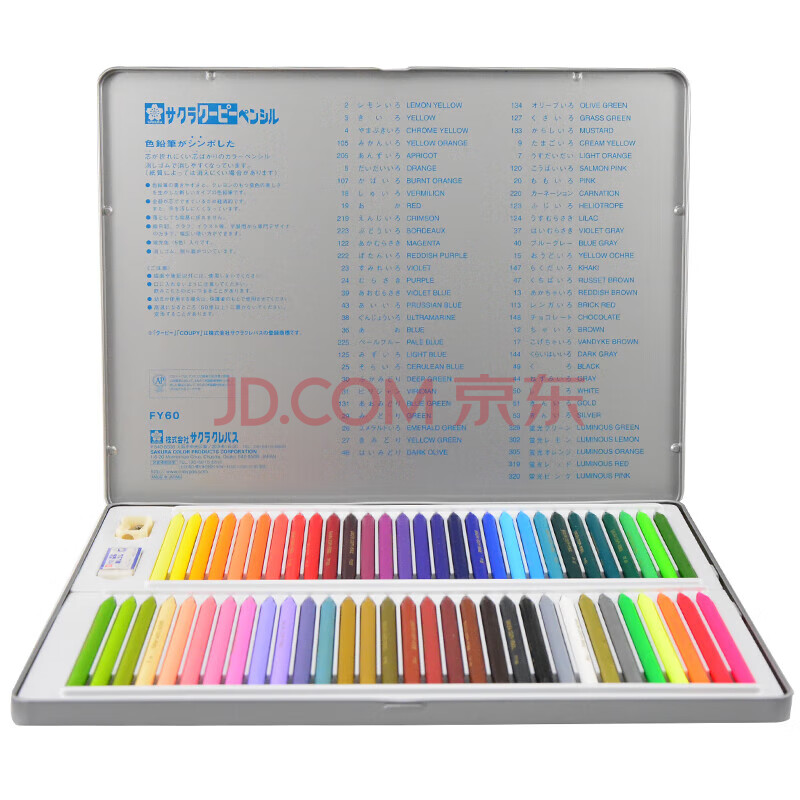 商品相册:樱花(SAKURA)塑料蜡笔彩色铅笔美术儿童绘画60色铁盒套装FY-60【日本进口】美术写生第
