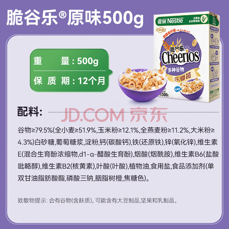 商品相册:雀巢(Nestle)进口脆谷乐儿童零食500g谷物圈儿童麦片早餐即食非油炸全谷物第