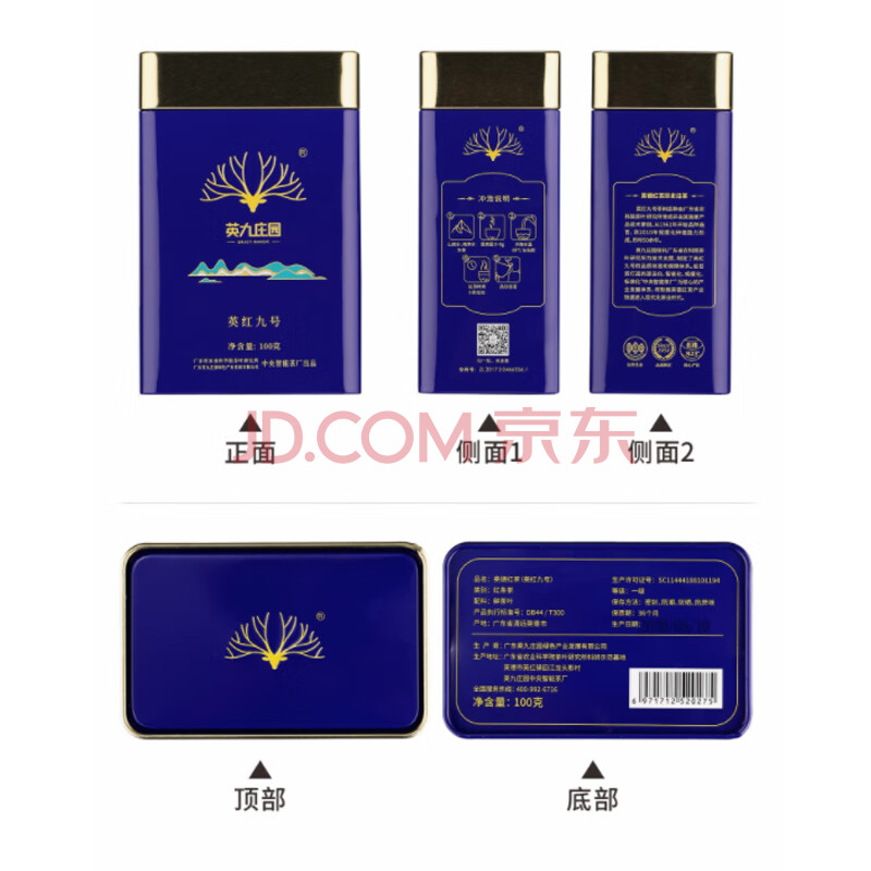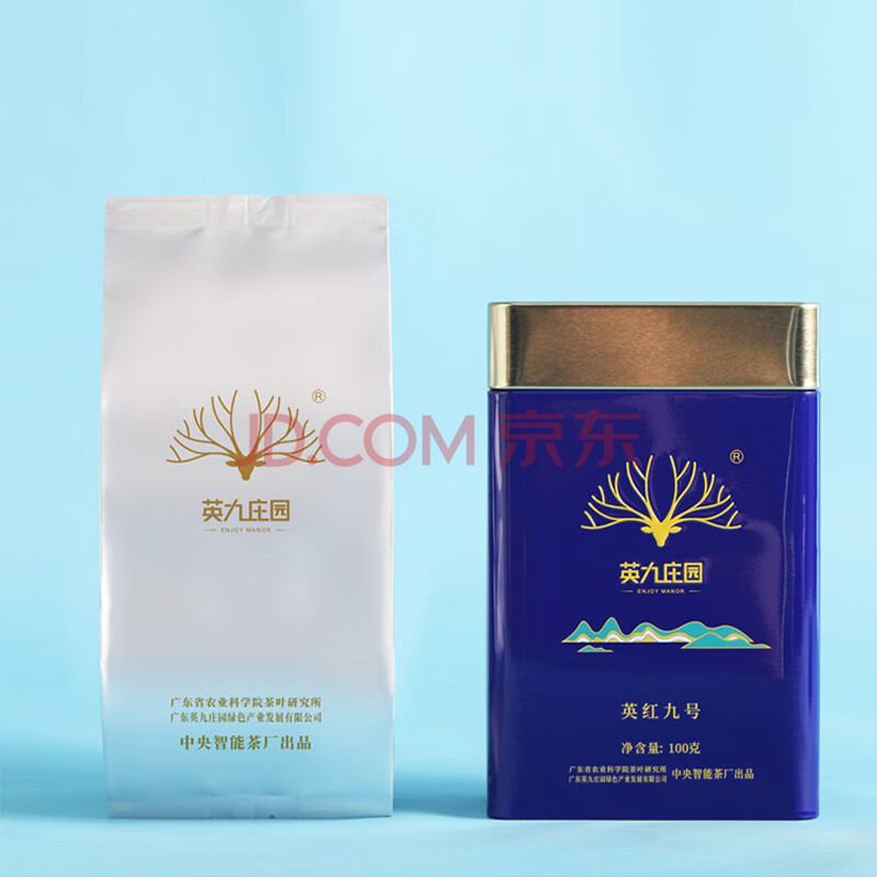 商品相册:ENJOY MANOR英九庄园 英红九号一级英德红茶小蓝罐功夫茗茶手提袋罐装 100g*2第
