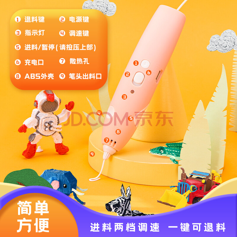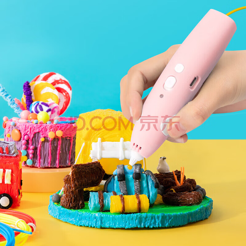 商品相册:得力3D打印笔无线低温绘画笔启蒙玩具涂鸦笔手工DIY套装毕业儿童节生日女孩(附5色耗材)粉新年礼物第