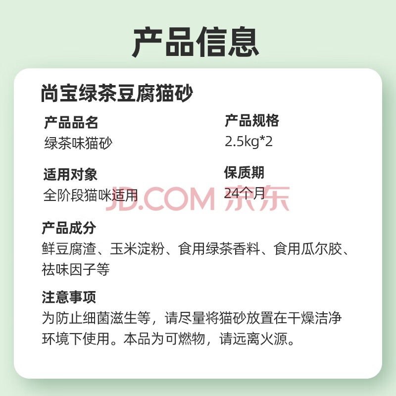 商品相册:尚宝豆腐猫砂10斤吸臭低尘绿茶豆腐砂易结团幼猫细砂可冲马桶第