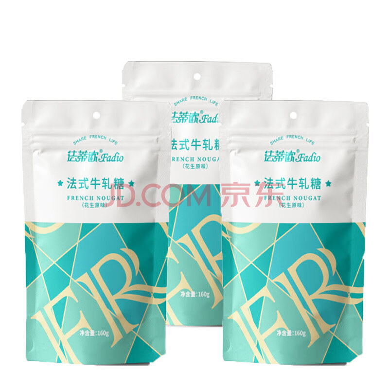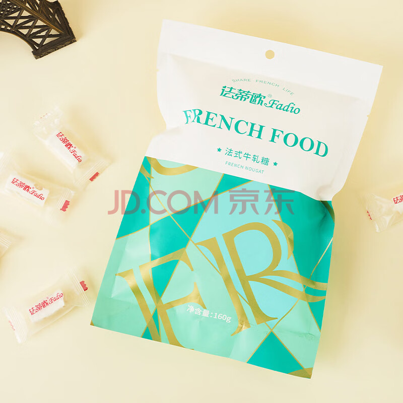 商品相册:法蒂欧 袋装法式牛扎糖160g零食点心休闲食品牛轧糖160g*3第