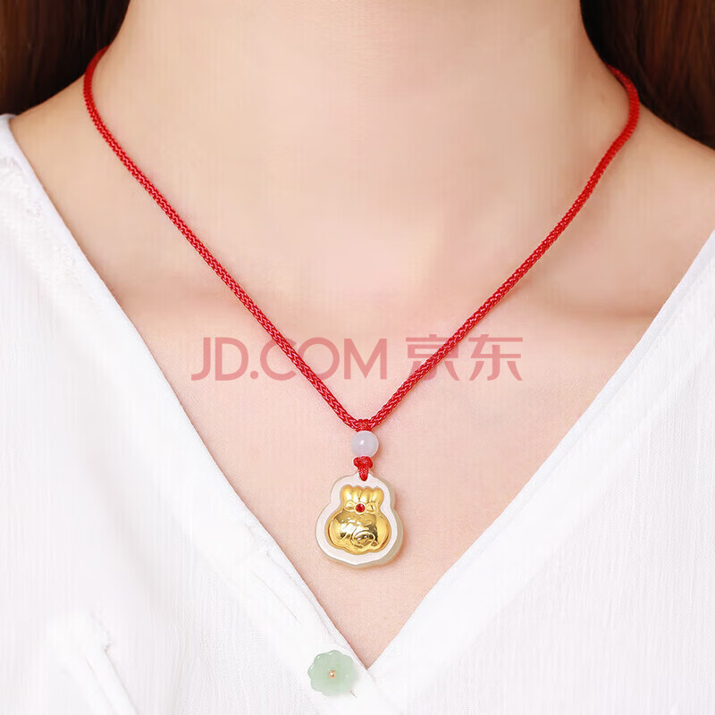 商品相册:Lossot金镶玉福袋吊坠男女款镶嵌和田玉吊坠翡翠珠红绳项链宝宝生日礼物第