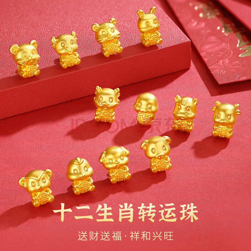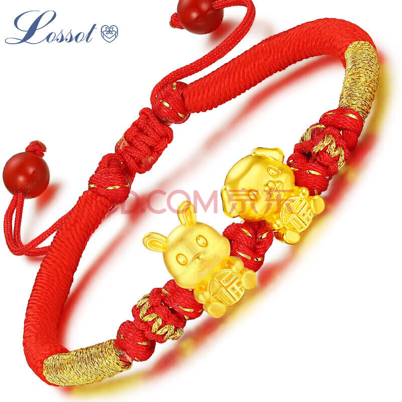 商品相册:Lossot足金六合兔狗生肖黄金手链男女款5D硬金转运珠编织红绳本命年手链第1张/共6