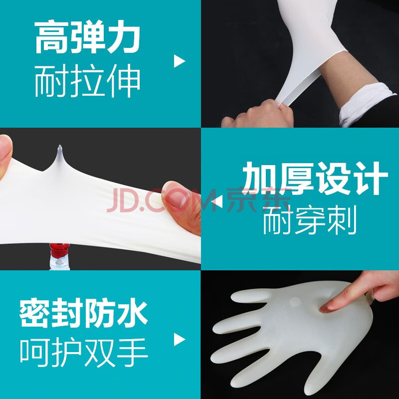 商品相册:可孚一次性医用检查手套橡胶乳胶医用防护手套加长加厚检查100只L码第