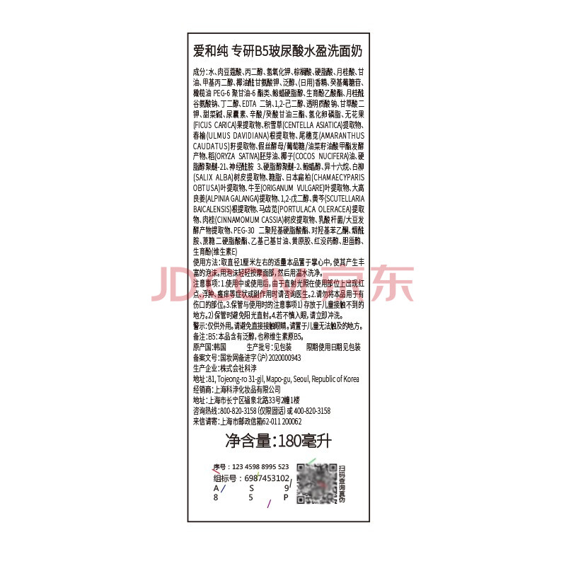 商品相册:AHC B5玻尿酸洁面乳180ml护肤品男女士洗面奶敏肌可用生日礼物第