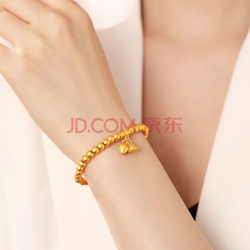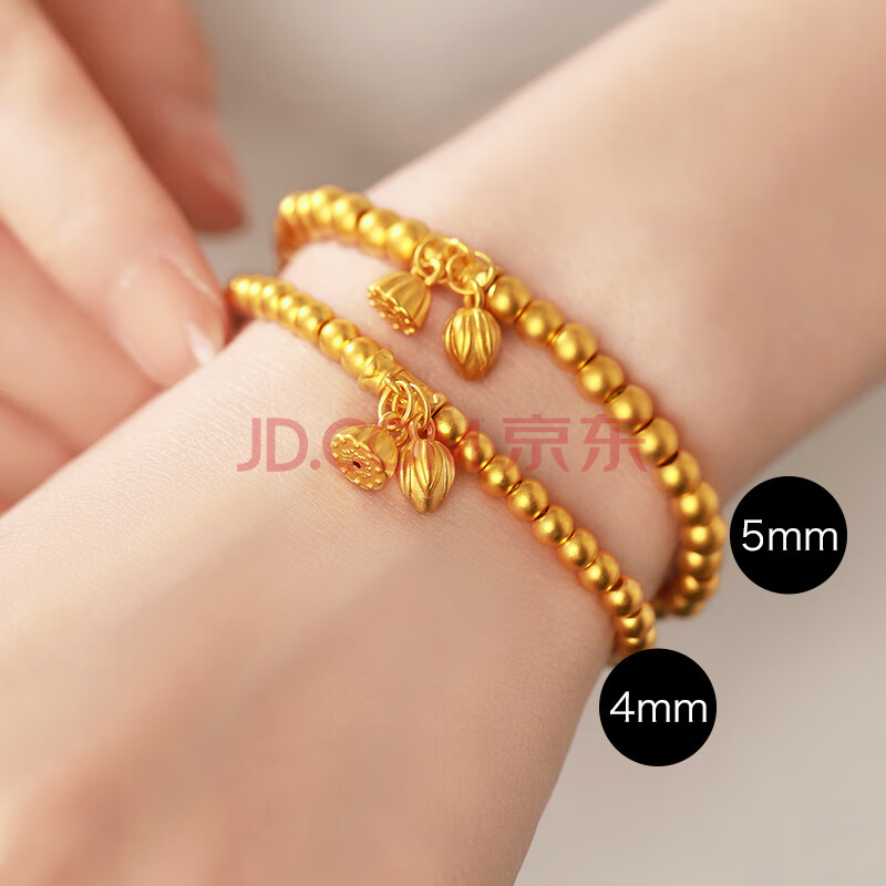 商品相册:Lossot好运莲莲足金999黄金手链女3D硬金古法金珠转运珠手镯生日礼物第