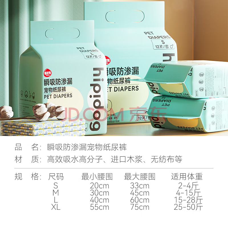 商品相册:嬉皮狗狗狗生理裤尿垫纸尿裤公狗尿不湿尿片 M码 12片装第