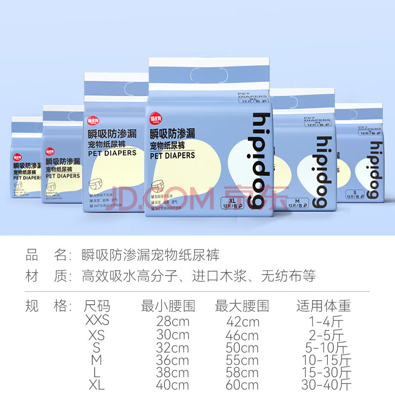 商品相册:嬉皮狗狗狗生理裤尿垫纸尿裤母狗尿不湿尿片卫生巾姨妈裤 M码 12片装第