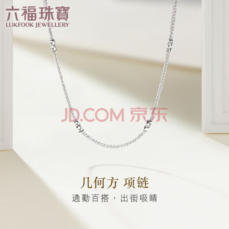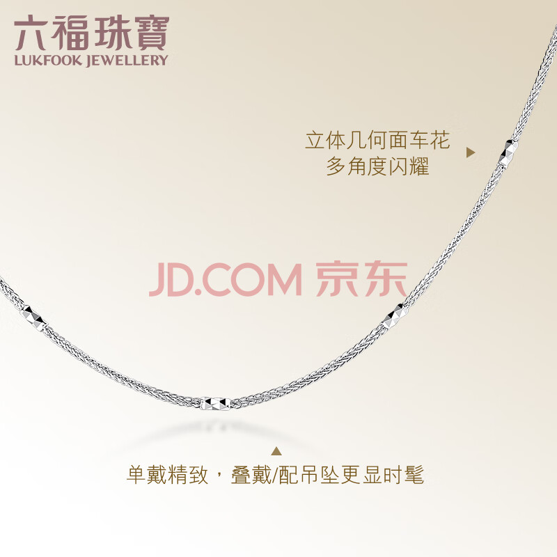 商品相册:六福珠宝 铂950肖邦链铂金项链女款素链锁骨链 计价 约3.11克第1张/共9