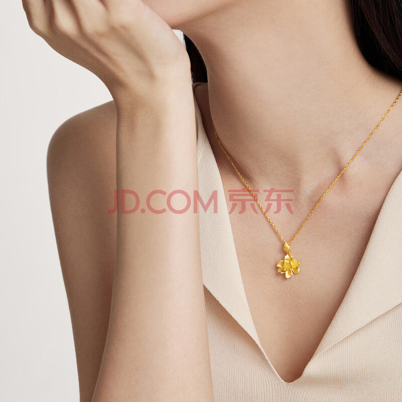 商品相册:周大福牡丹花实心黄金吊坠女(工费180)约3.9g EOF789生日礼物第