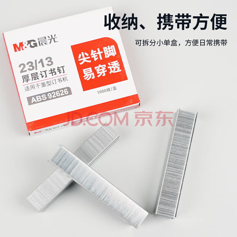 商品相册:晨光(M&G)23/13号厚层订书钉 易穿透订书针 重型订书钉 办公用品 1000枚/盒 5盒装ABS92626开学必备第