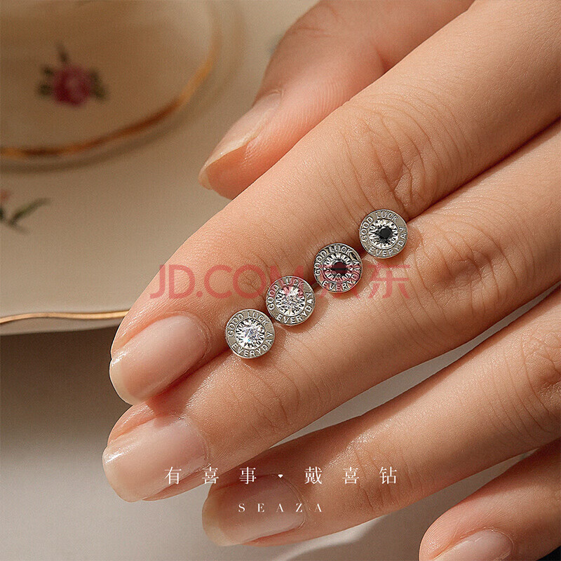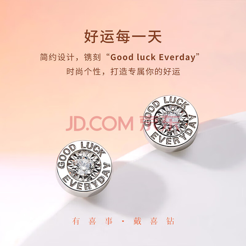 商品相册:喜钻生日礼物蜜语PT950铂金50分效果钻石耳钉情侣耳饰送女友第1张/共8