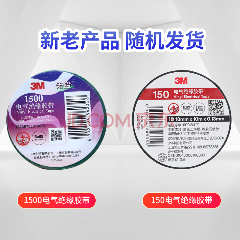 商品相册:3M 1500# 办公家装 通用型电工电气绝缘胶带 无铅阻燃耐高温 黑色 18mm*10m*0.13mm 5卷装第