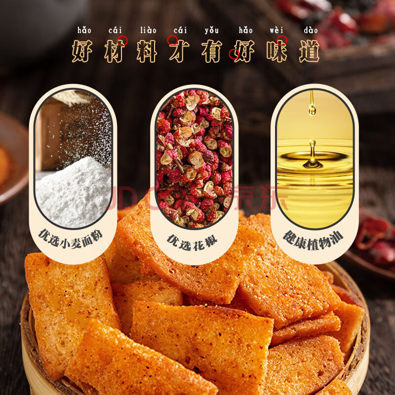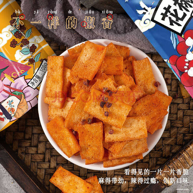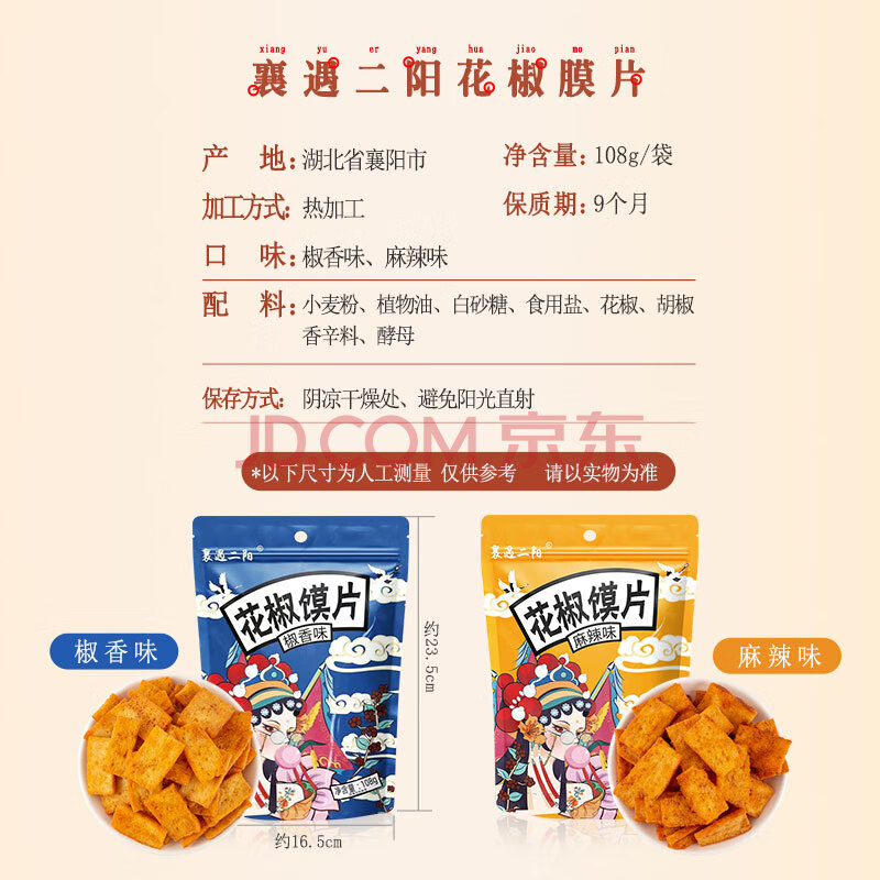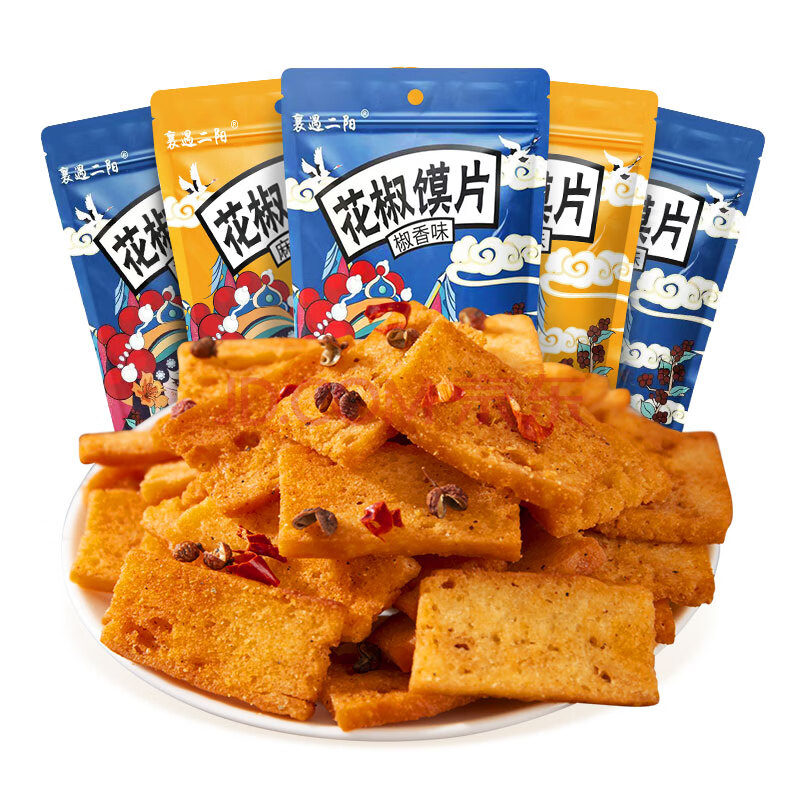 商品相册:襄遇二陽手工花椒馍片椒香味108g*3+麻辣味108g*2 膨化香脆零食小吃锅巴第