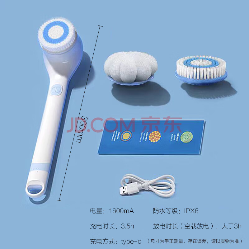商品相册:Pritech电动洗澡刷搓背刷搓背洗澡搓澡神器沐浴刷XZ1蓝38节送女生礼物第