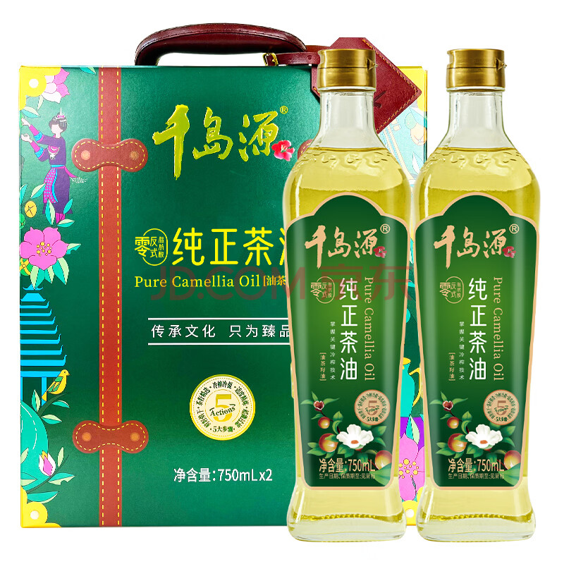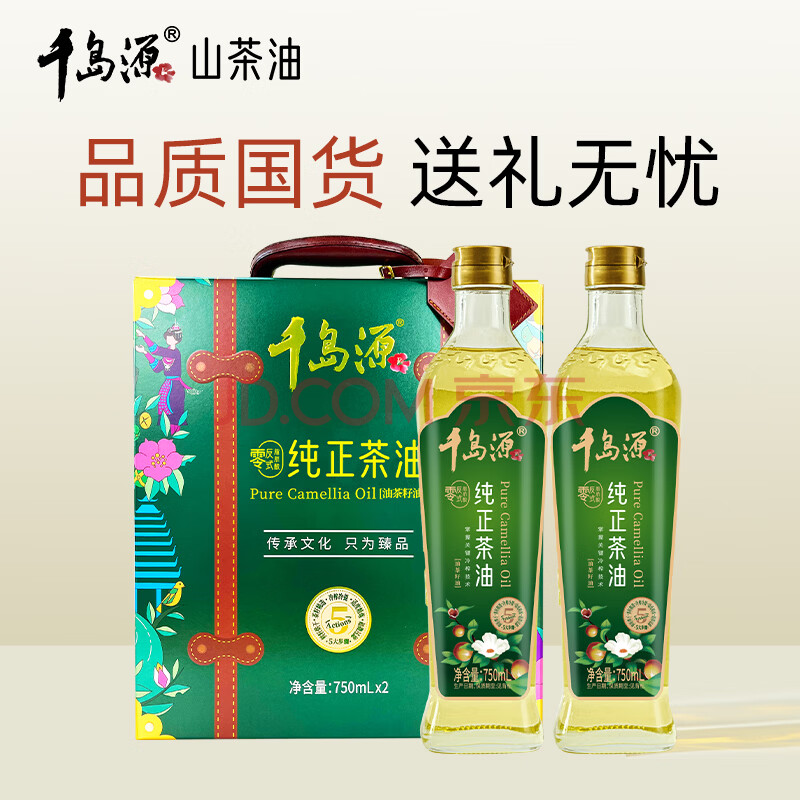 商品相册:千岛源【保真山茶油】纯正茶油礼盒装750ml*2 年货团购福利送礼食用油第