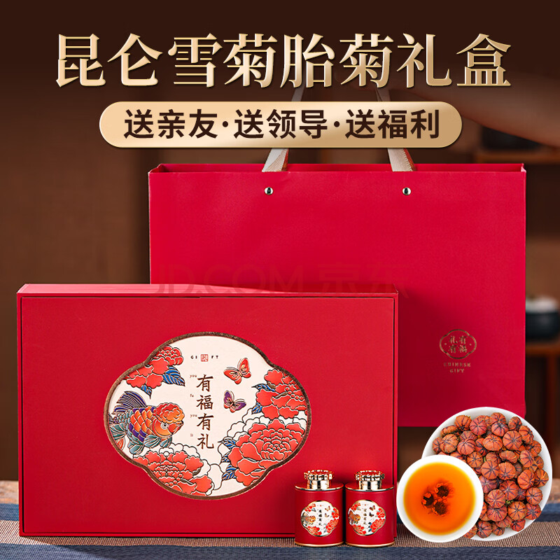 商品相册:冬海红 新疆雪菊胎菊茶小罐礼盒 年货礼盒 过年春节送长辈领导客户礼品第