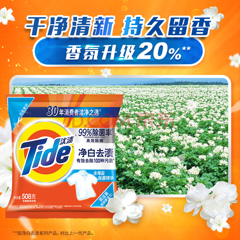 商品相册:汰渍净白去渍洗衣粉20.32斤装(508g*20袋)大袋批发非皂粉家庭装第