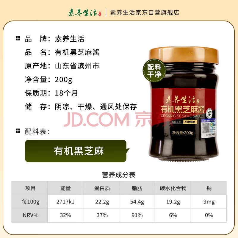 商品相册:素养生活有机黑芝麻酱200g 纯黑芝麻酱 黑芝麻调味酱 黑芝麻糊酱 调味料第
