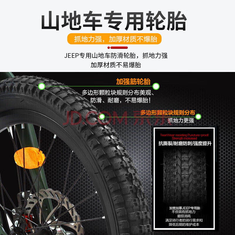 商品相册:Jeep吉普山地自行车20英寸后减震折叠变速单车成人中小学生代步车男女第