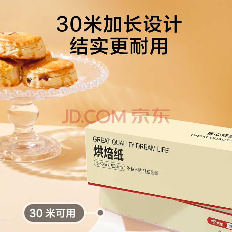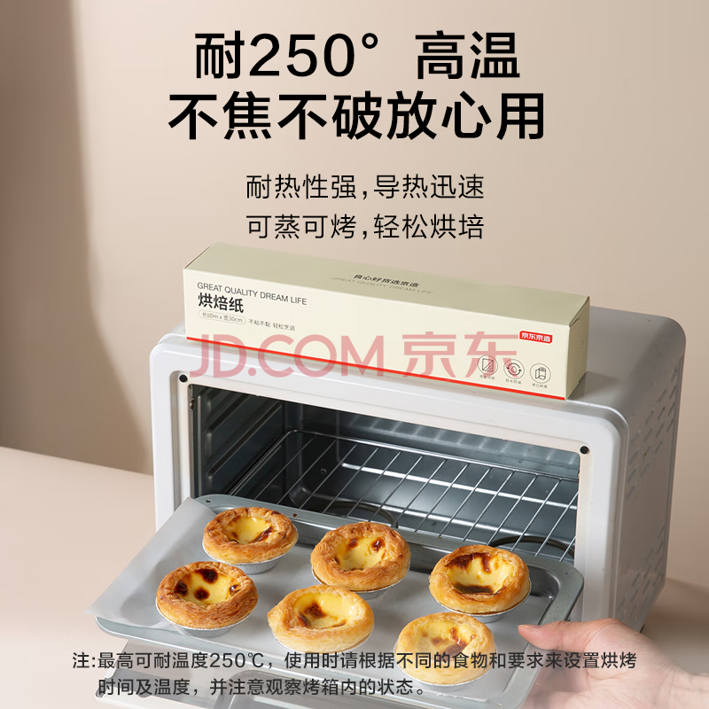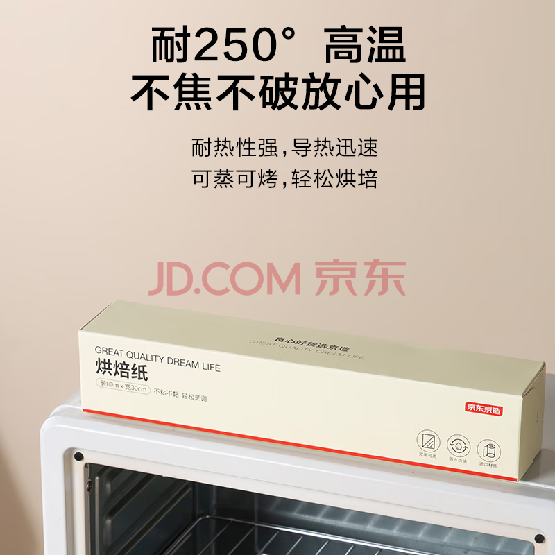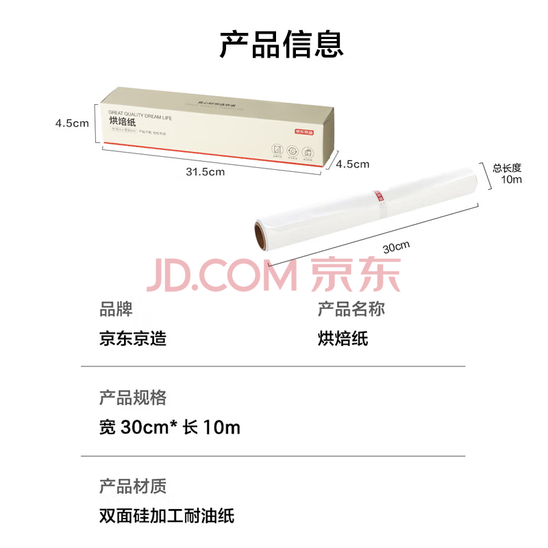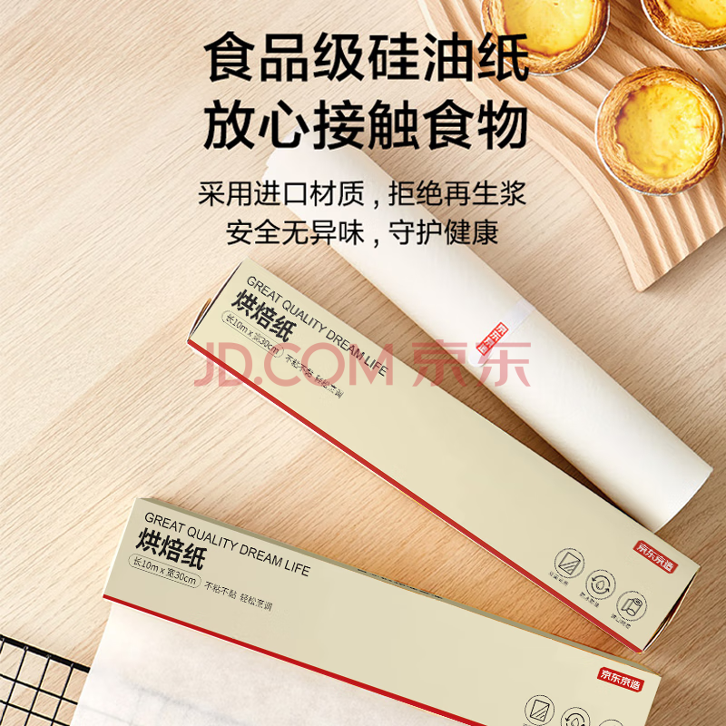 商品相册:京东京造 烘焙纸 烤箱空气炸锅专用硅油纸 防油防粘烧烤纸【10米×30cm】第1张/共9
