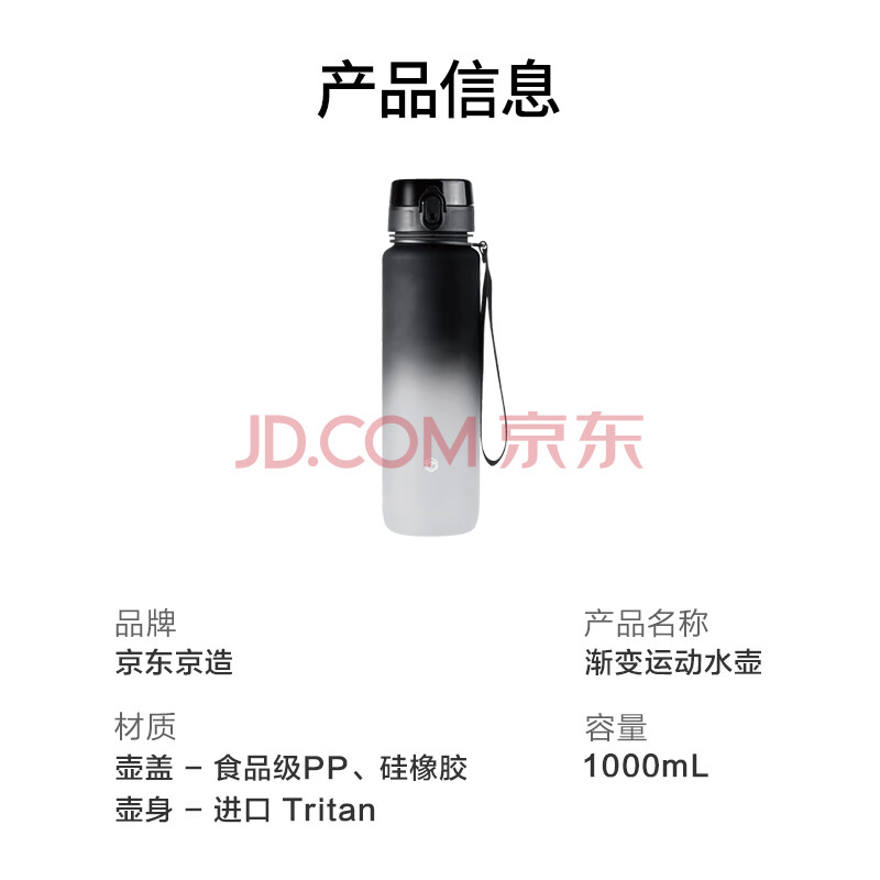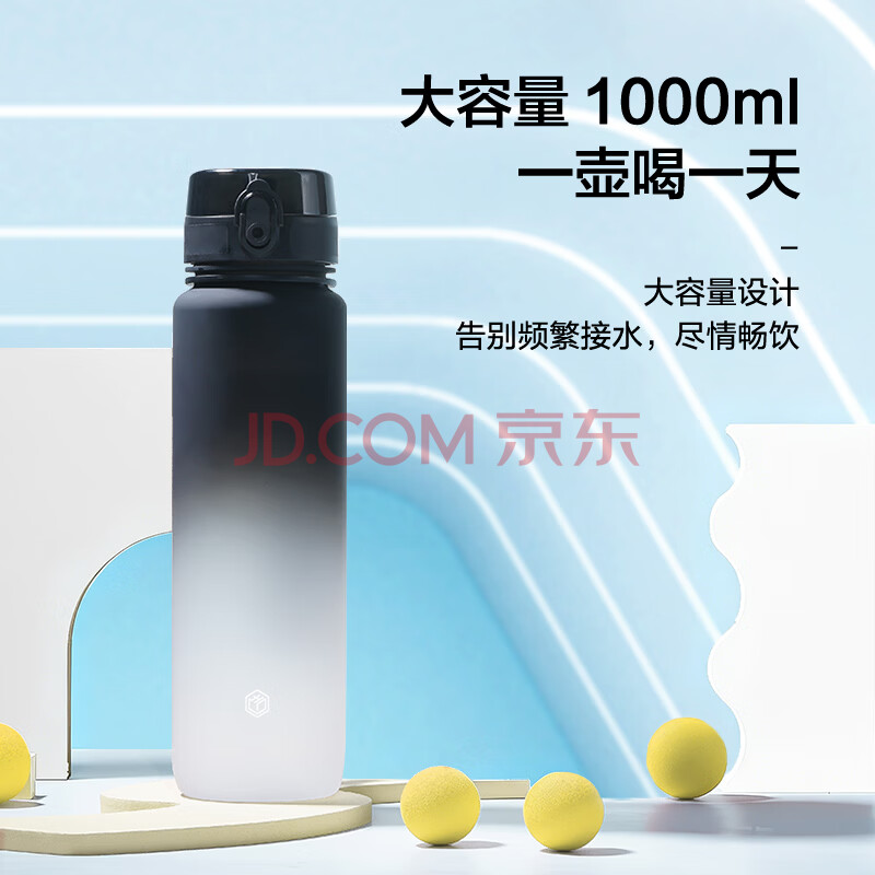 商品相册:京东京造运动水杯 tritan水杯运动水壶大容量外出方便携带 黑白渐变1L第