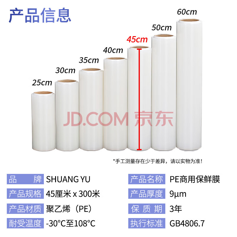 商品相册:SHUANG YU大号商用保鲜膜【PE食品级300米*45cm】耐高温食品膜可微波家用第
