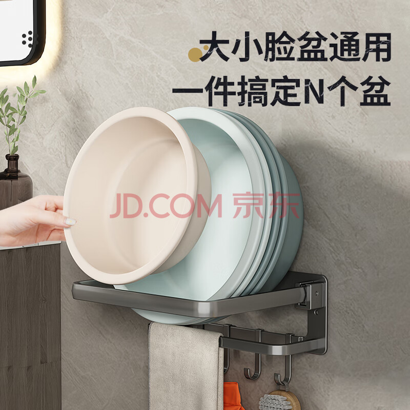 商品相册:慕亚免打孔脸盆架脸盆挂钩卫生间置物架浴室洗脸盆收纳挂盆神器 1个装第