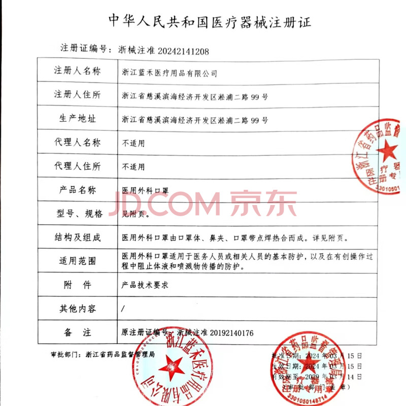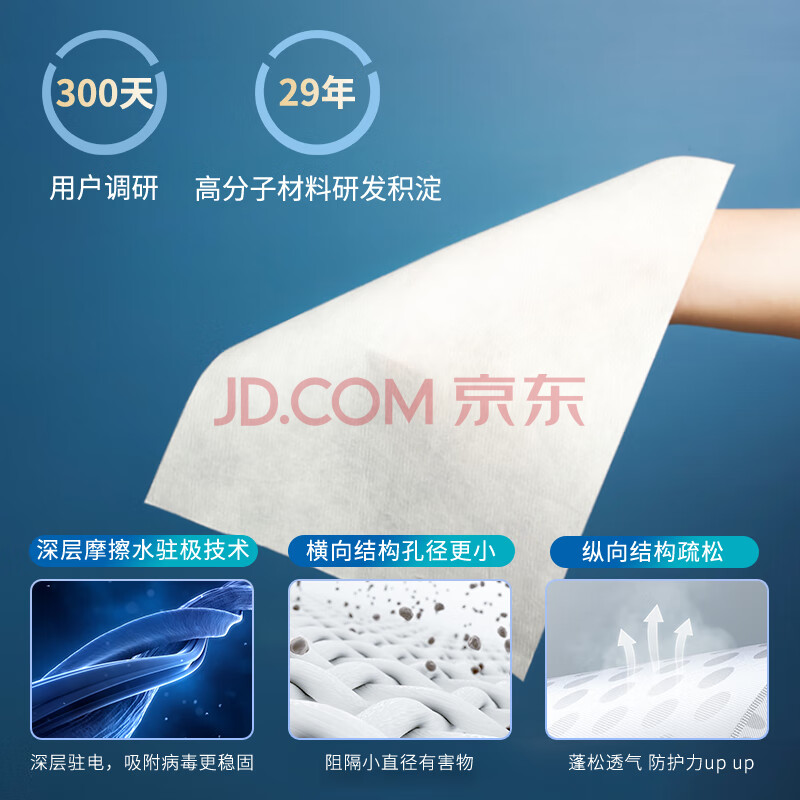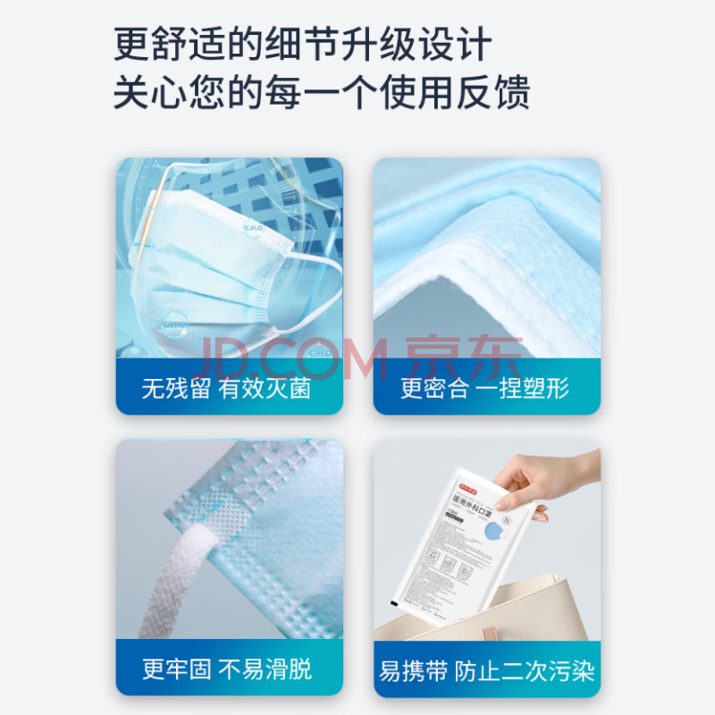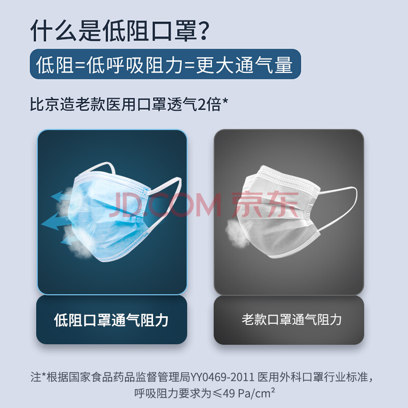 商品相册:京东京造医用外科口罩一次性独立包装灭菌级100只蓝色【2倍透气】防尘口罩第