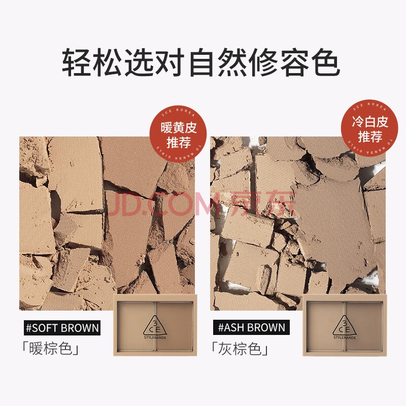 商品相册:3ce双色修容盘#SOFT BROWN暖棕色鼻影阴影高光哑光生日礼物送女友第