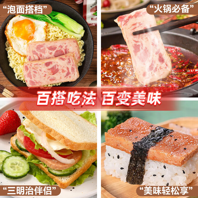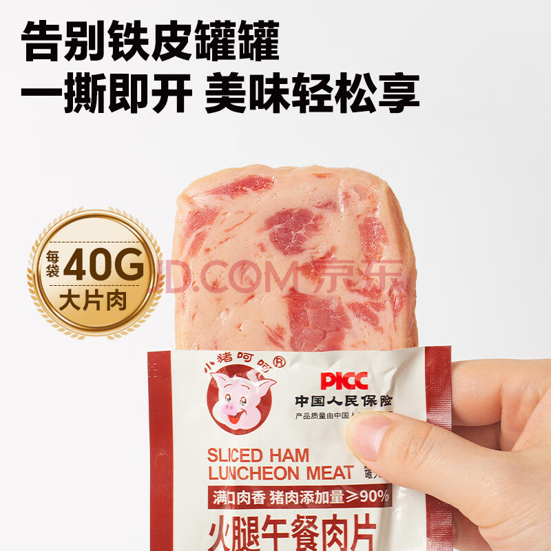商品相册:小猪呵呵 火腿午餐肉片 40g*18片装90%猪肉高蛋白泡面方便面螺蛳粉三明治第1张/共5