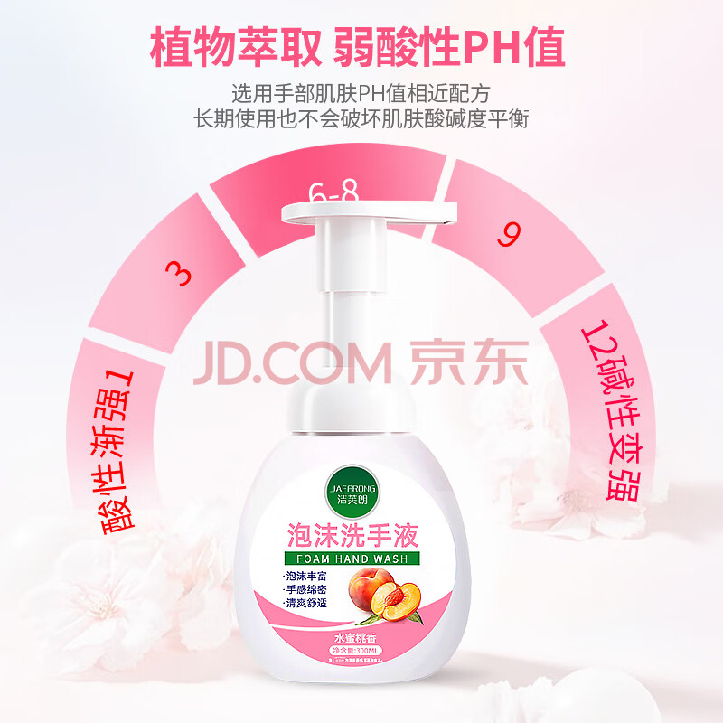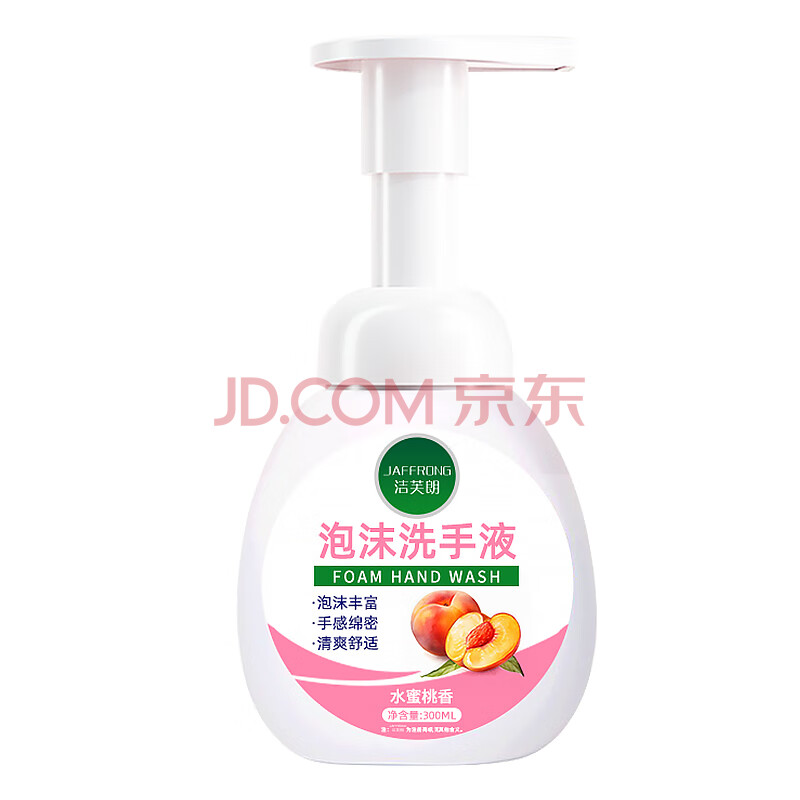 商品相册:洁芙朗(JAFFRONG)泡沫洗手液300ml 泡沫细腻洁净易冲洗水蜜桃香味成人家用通用第