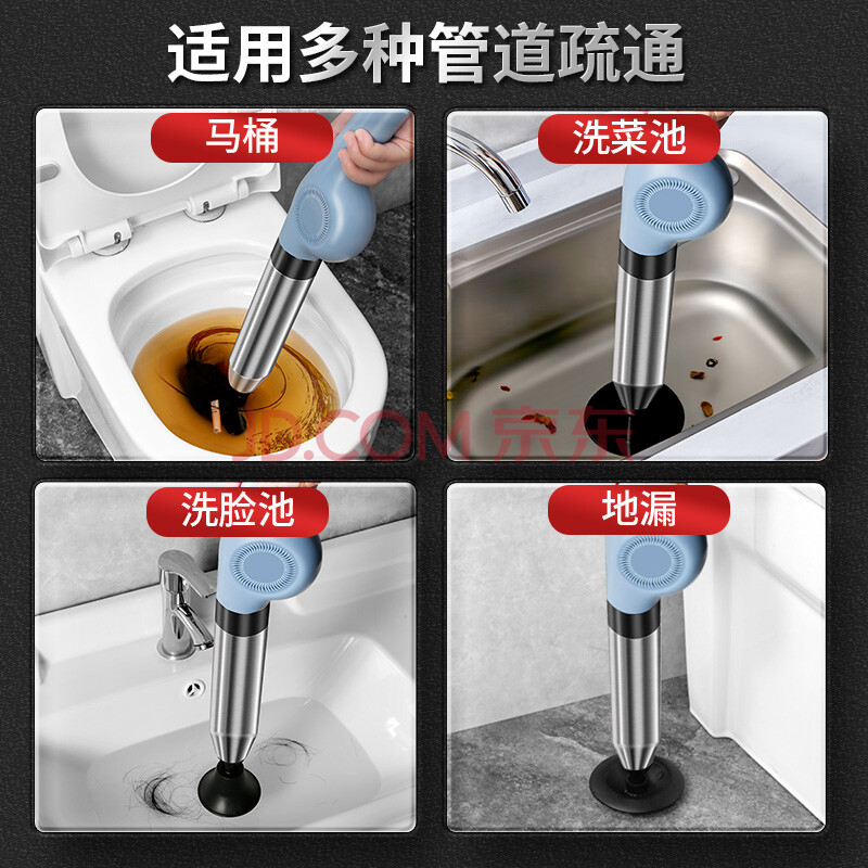 商品相册:虎行家居 锂电不锈钢材质马桶疏通器通下水道神器一炮通厕所疏通工具第1张/共5