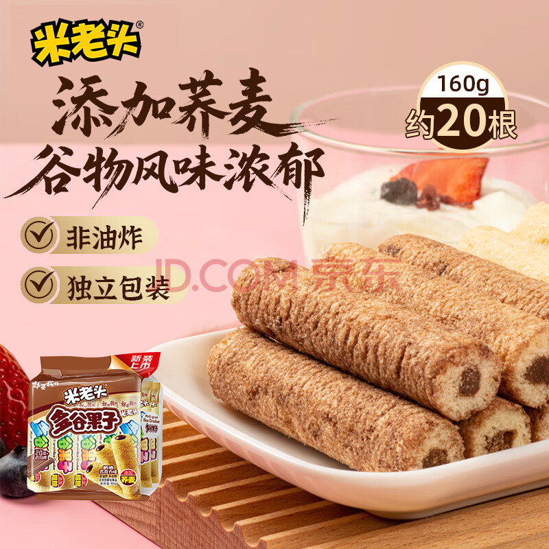 商品相册:米老头多谷果子巧克力味 粗粮谷物夹心膨化饼干儿童零食 160g/袋第1张/共5