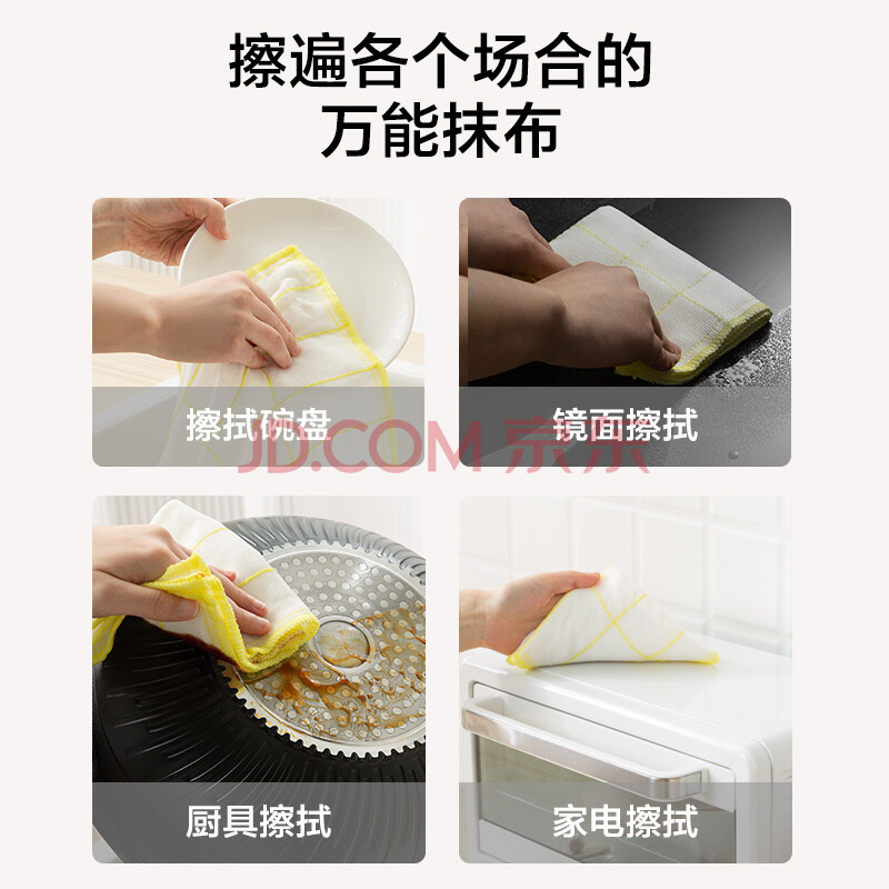 商品相册:京东京造 棉柔抹布 洗碗布吸水清洁去油污纤维巾不掉毛 10片装第