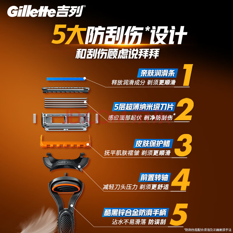 商品相册:吉列锋隐5基础 剃刮胡须刀手动差旅便携款 1刀架7刀头 5层刀片男士实用礼物 京东自营旗舰非吉利 防刮伤免须泡第