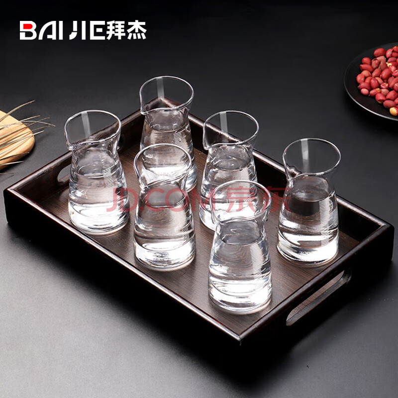 商品相册:拜杰白酒杯分酒器酒杯套装水晶分酒器小酒杯玻璃杯洋酒杯 80ML6只装第1张/共8