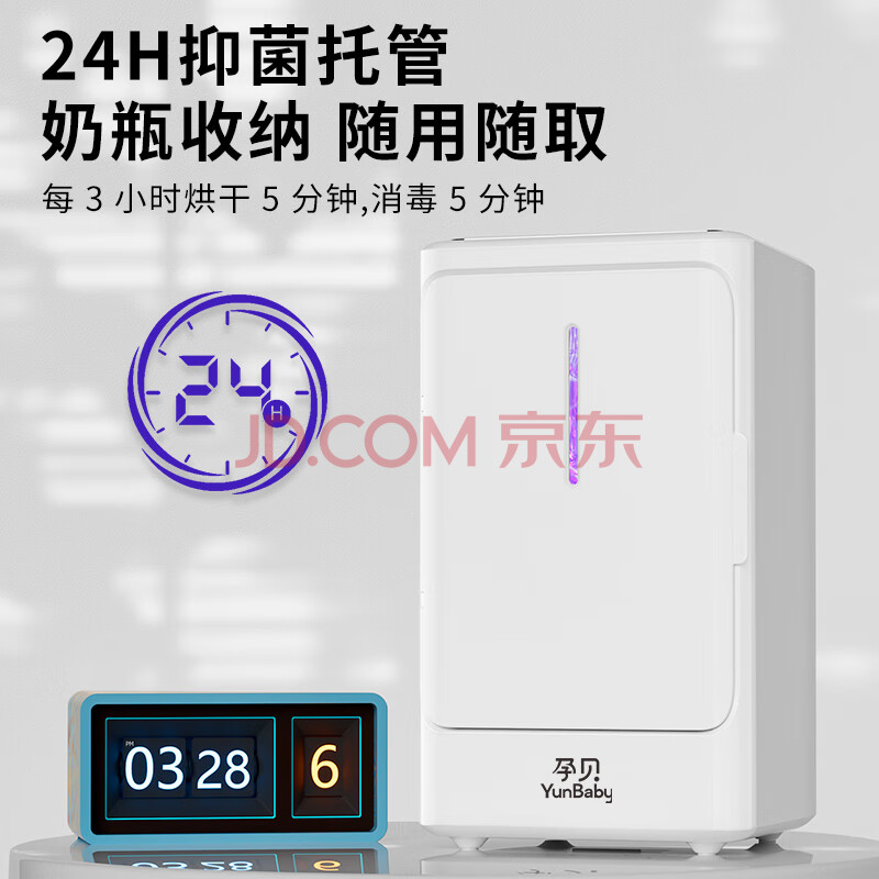 商品相册:孕贝婴儿消毒柜 UVC紫外线奶瓶消毒烘干二合一体机 巴氏循环闪烘 6.5L第