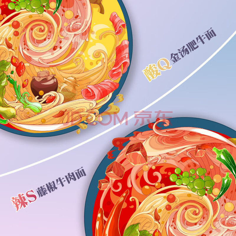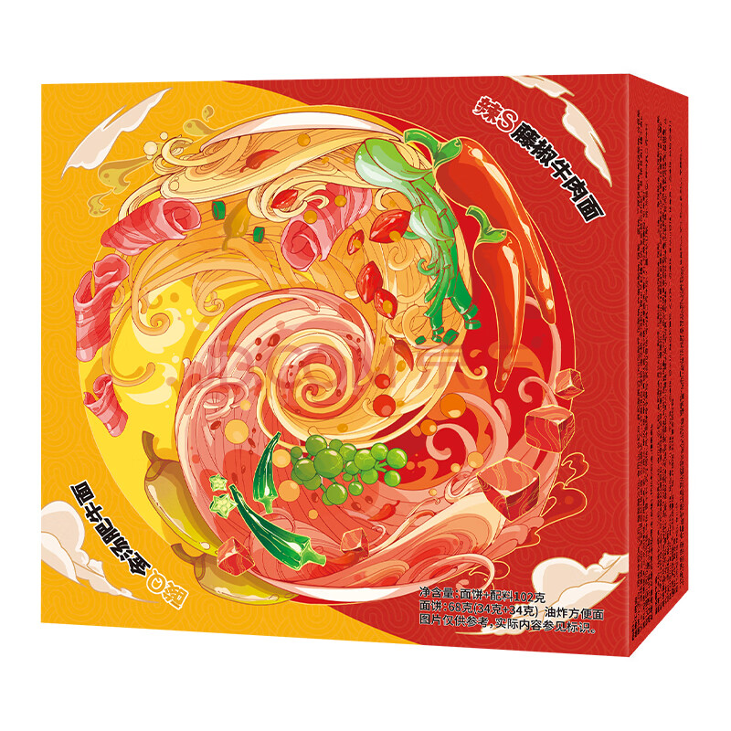 商品相册:康师傅方便面 鸳鸯锅 辣S藤椒牛肉面+酸Q金汤肥牛面 单盒装泡面速食零食第